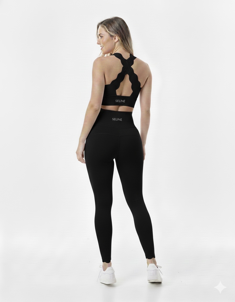 SELINE Cross-Back Wavy Bra & Flat-Waist Leggings Set