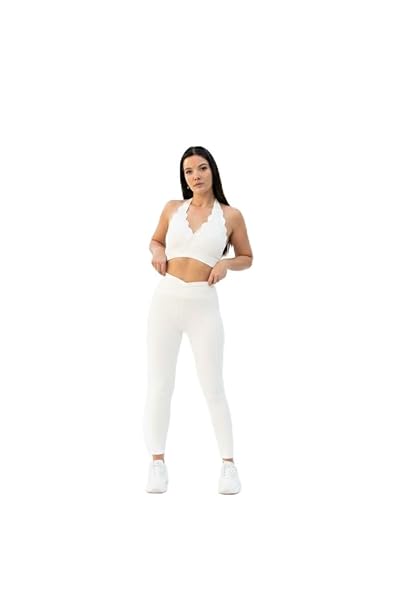 Deep V-Neck Wave Sports Bra With V waist legging (White, L)