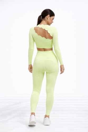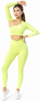 SELINE PRO Wavy Asymmetrical Slash Neck Long Sleeve Crop Top With V waist legging (Lemon Green, XL) Buy Online at Best Price in UAE – Amazon.ae
