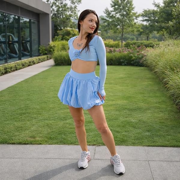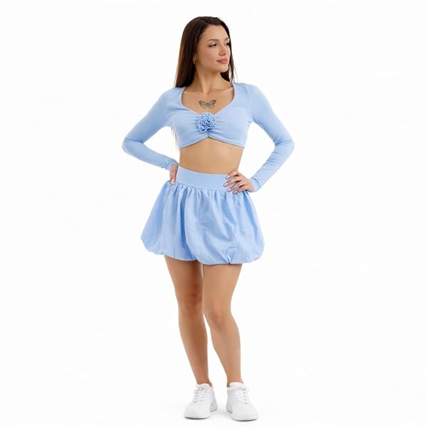The SELINE YOGA Long Sleeve Crop Top and Bubble Skirt Set brings together style and comfort for your active lifestyle. This distinctive two-piece ensemble features an eye-catching front flower design that adds a feminine touch to your workout wardrobe. The long sleeve crop top offers modest coverage whilst allowing freedom of movement, making it perfect for yoga sessions, pilates, or casual wear. Paired with a unique bubble skirt, this set creates a flattering silhouette that transitions seamlessly from studio to street. The versatile design also allows you to pair the crop top with leggings for a different look, giving you multiple styling options. Crafted for those who appreciate both fashion and function, this set is ideal for various activities including dance, fitness classes, or leisurely outings. The comfortable fit ensures you can move with confidence throughout your day.