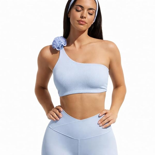 SELINE YOGA One-Shoulder Floral Sports Bra Top With skirt OR LEGGING (Blue Legging, XL)