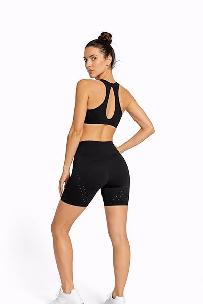 SELINE YOGA Women’s Racerback Sports Bra & High-Waist Hollow Breathable Yoga short