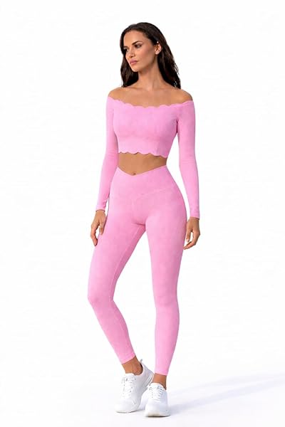 This stunning two-piece activewear set from SELINE combines fashion-forward design with functional performance. The wavy off-shoulder long sleeve crop top features an elegant scalloped neckline and hem that adds a feminine touch to your workout wardrobe, whilst the long sleeves provide coverage and support during any activity. Paired with high-waisted V-waist leggings that create a flattering silhouette, this coordinated set in classic black offers versatility for both gym sessions and casual outings. The off-shoulder design allows freedom of movement whilst maintaining a secure fit, and the form-fitting leggings provide compression and support where you need it most. Whether you’re hitting the gym, attending a yoga class, or running errands, this stylish ensemble keeps you looking polished and feeling confident. The sleek black colour makes it easy to mix and match with other pieces in your wardrobe, whilst the distinctive wavy trim detail sets this set apart from ordinary activewear. Please refer to the sizing chart before placing your order to ensure the perfect fit.